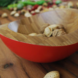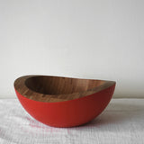 NUTS is a serving bowl with a curved nutshell inspired shape. It is created with a distinctive technique that emphasizes the unique texture of the bamboo bundle. The colors represent Japanese traditional colors. This serving bowl transforms the simplest meal into a festive occasion.