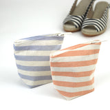 To preserve the shape of the bag/pouch, do not wash in washing machine. Instead, wipe with a slightly wet cloth. Discoloration may occur by rubbing too hard. Do not dry clean. Do not use bleach. Do not put in water for a long time.