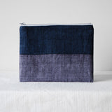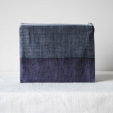 This pouch is perfect for carrying cosmetics and small stationery, or could be used as a wallet. Outside is 100% hemp and inside 100% cotton. The three color palette is selected from Japanede traditional colors, such as pearl indigo, dark brown and blue purple.