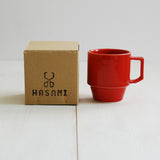 This simple and beautiful porcelain mug is from Hasami town, Nagasaki prefecture, famous for Hasami Yaki (porcelain). The color and the stackable feature of this mug are iconic of the Hasami brand. It also has a retro touch. The Block Mug is meant for everyday use and is very sturdy. If you have a few or more, you can stack them to organize your kitchen storage and mix and match the colors for a unique look. It can hold up to 10 oz (300 cc)